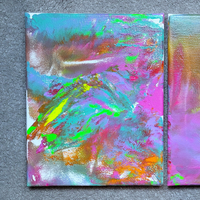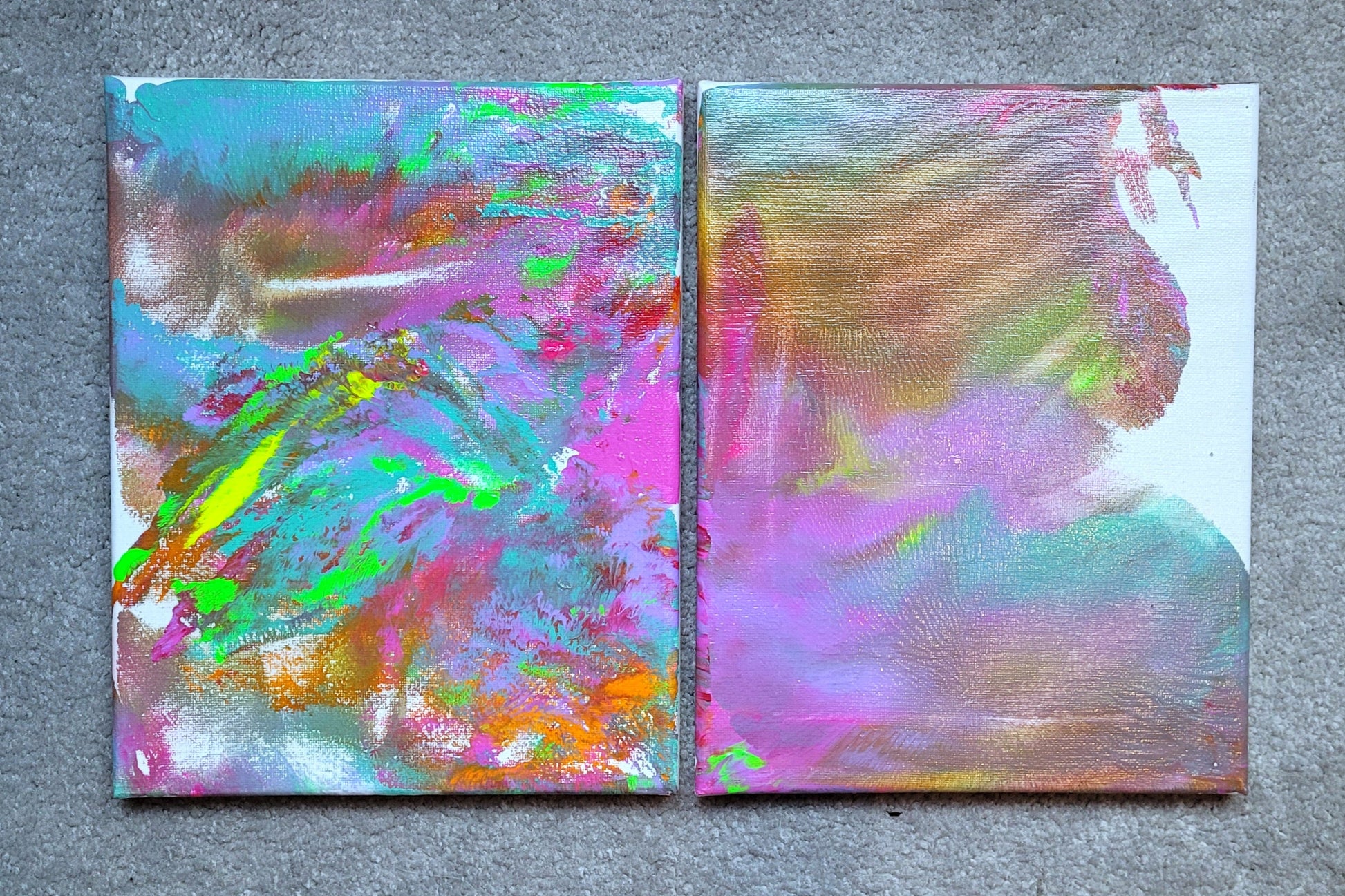 Canvases I sat on during our Spooktober UV glow painting livestream on October 21, 2024! Get the recording on MFC